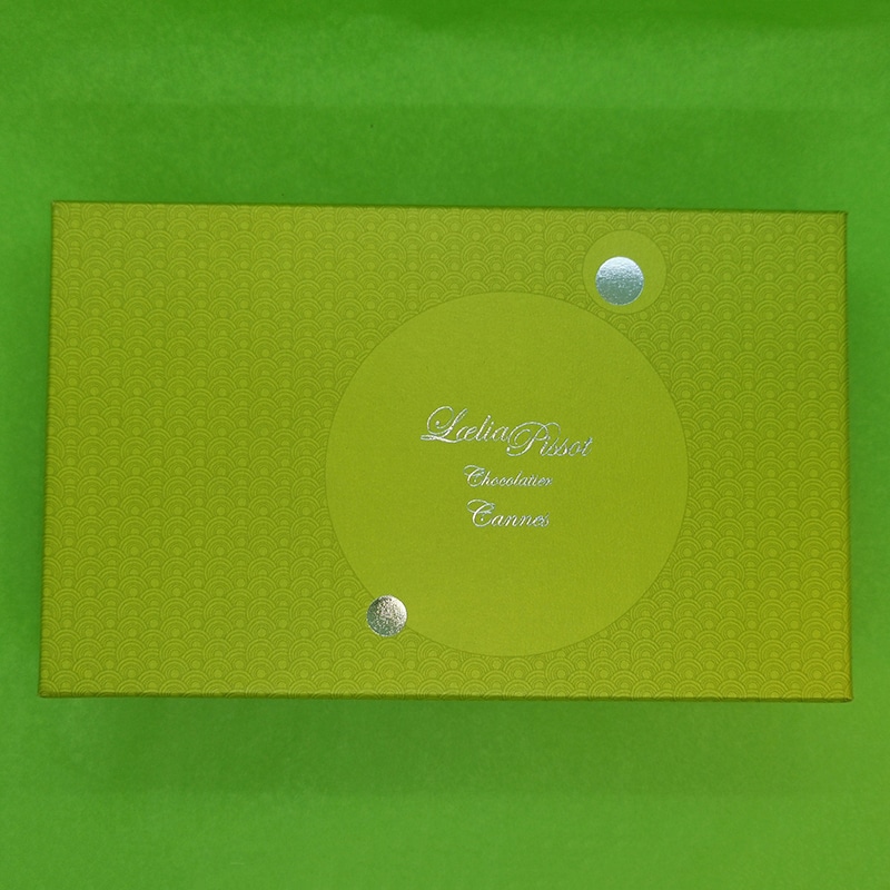 Bonbons de chocolats enrobés de chocolat noir (64% de cacao minimum, pur beurre de cacao) et de chocolat au lait (34% de cacao minimum, pur beurre de cacao).