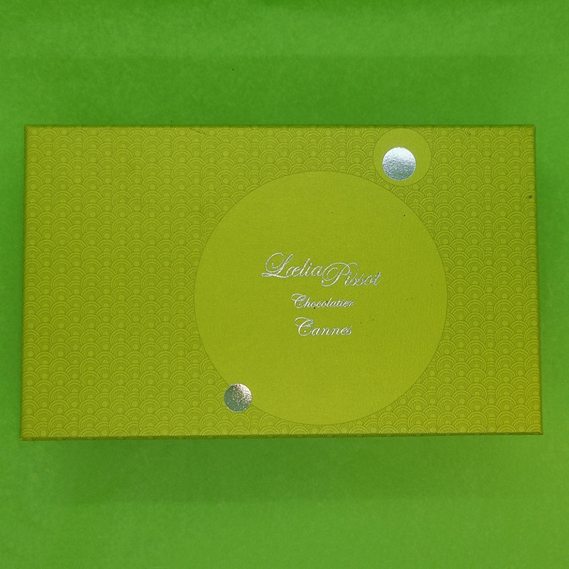 Bonbons de chocolats enrobés de chocolat noir (64% de cacao minimum, pur beurre de cacao) et de chocolat au lait (34% de cacao minimum, pur beurre de cacao).